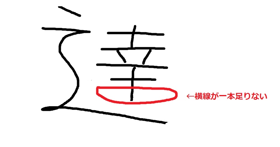 上記のイラストをよく見てみると、キキが書いた「達」には横線が一本足りないことが分かります。