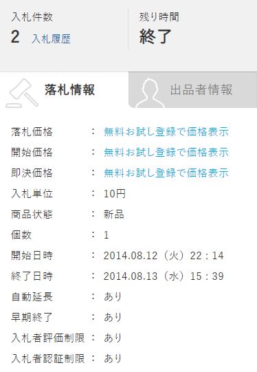 ヤフオクでは2014年8月12日に、手に入れた人が新品未開封の状態で出品していました。